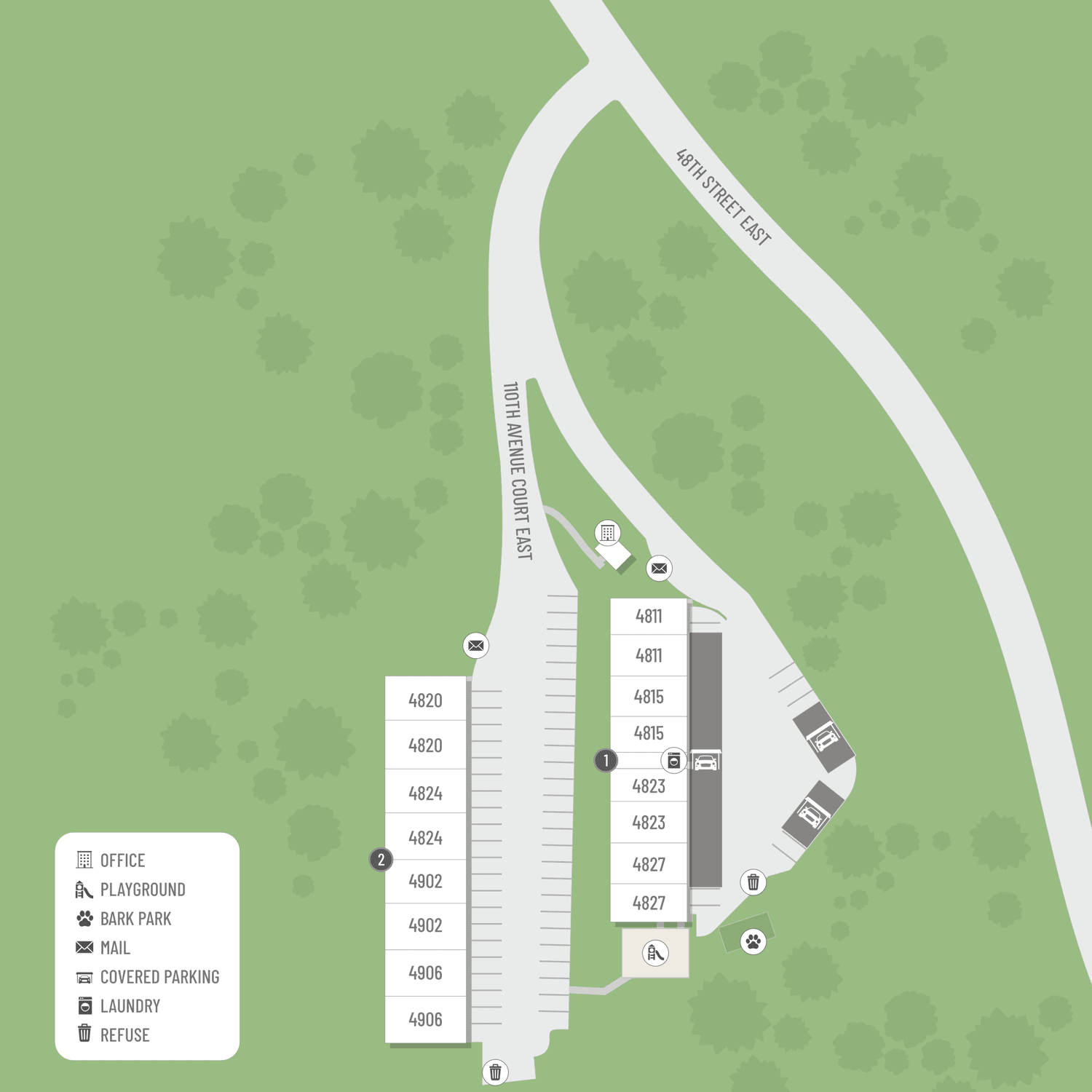 Select a floor plan or bedroom count to view those units on the overhead view on the site map. If you need assistance finding a unit in a specific location please call us at 253-845-0445 TTY: 711.